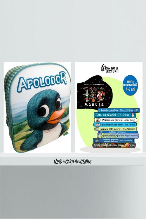 Pachetul Momentul Lecturii. Mănușa reunește 10 titluri esențiale pentru copiii între 4 și 6 ani, selectate cu grijă pentru a transforma lectura într-o experiență caldă, jucăușă și educativă. Fiecare carte cultivă curiozitatea, empatia și bucuria descoperirii, iar cadoul inclus – Rucsacul Apolodor 3D (3–6 ani) – completează perfect acest univers colorat și vesel. 🐧🎒