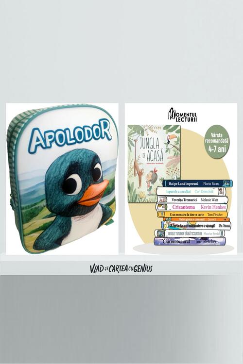 Pachetul Momentul Lecturii. Jungla reunește 10 titluri esențiale pentru copii între 4 și 7 ani, semnate de autori îndrăgiți și recunoscuți pentru modul jucăuș și profund în care abordează teme precum frica, curajul, empatia și descoperirea lumii. În plus, fiecare comandă include cadou un Rucsac Apolodor 3D (3–6 ani) – perfect pentru primele aventuri la grădiniță sau în familie. 🐧🎒